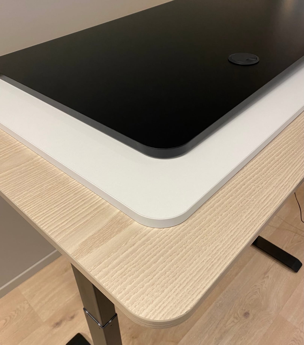 Det er i hvitt, svart, valnøtt og lys eik.